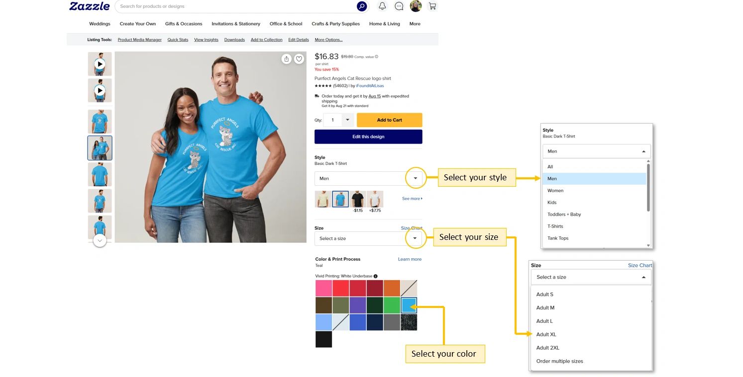 Choosing your style, size, and color is easy and fun. So many choices!